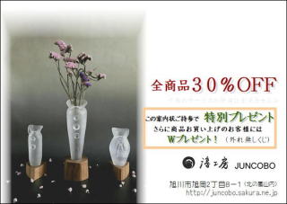 木glass、ラダムシリーズ食器、フクロウキャンドル等を展示