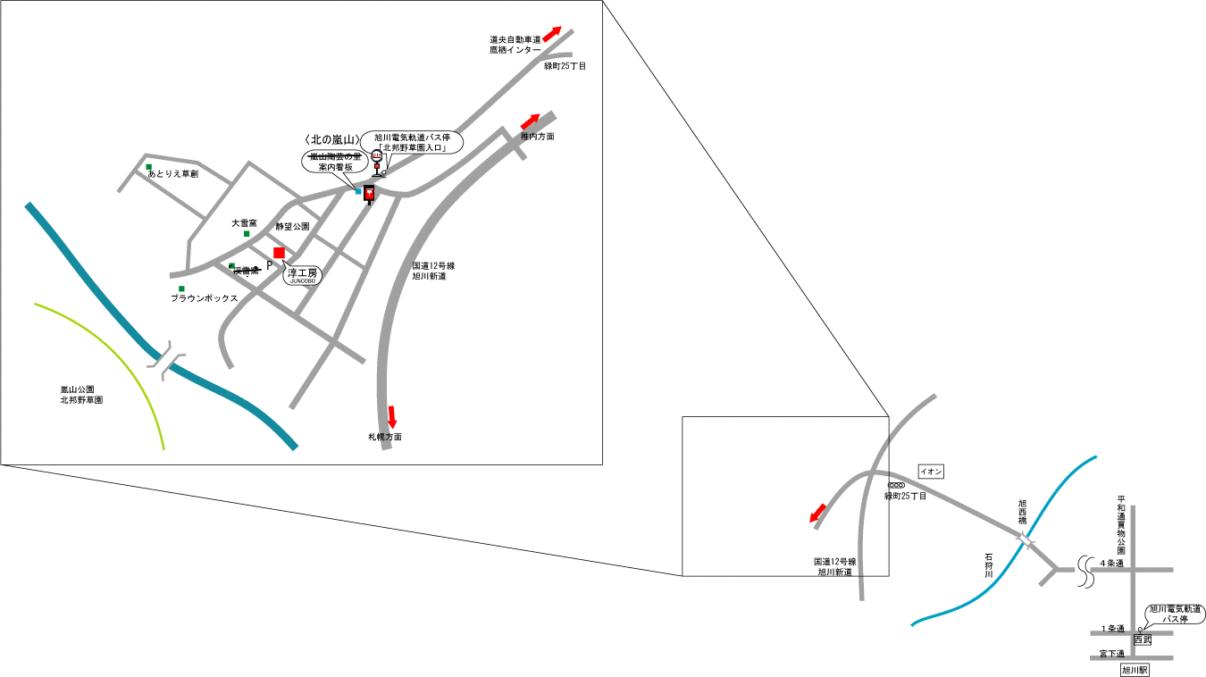 *道央高速道路 旭川鷹栖ICより車で6分 |