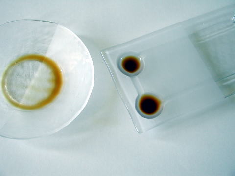 しょう油とりすぎていませんか? ソースやドレッシング、濃い味っておいしいですよね。 忙しい仕事や家事の合間に摂るせわしない食事も責任感の 強いあなたには長すぎる程でしょうか? でも一方ストレス世代といわれるあなたは塩分の気になる年頃 「血圧注意世代」でもあります。 え・クボ、リング皿は そんなあなたに使ってほしい塩分調整の機能性食器です。 四隅の窪み、リング状の窪みに余計なしょう油やドレッシングがたまります。自然に塩分の控え目な食事に変わって行きます。 |