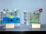 板ガラスを《ガラス切り》を使い 三角や四角に切り それらのガラスを